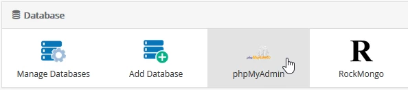 - एक बार वेबुजो एडमिन पैनल में लॉग इन करने के बाद, प्रदर्शित विंडो में "डेटाबेस" सेक्शन की तलाश करें और वहां से "phpMyAdmin" का चयन करें