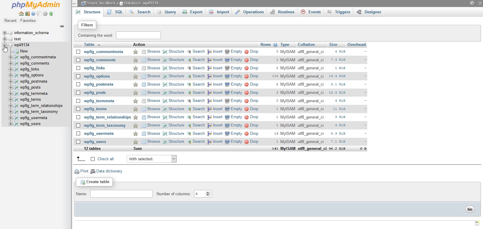 - Webuzo में पैनल में PhpMyAdmin अनुप्रयोग पूर्व-स्थापित है। यह अनुप्रयोग हमें ग्राफ़िकल ढंग से डेटाबेस देखने की अनुमति देता है।
