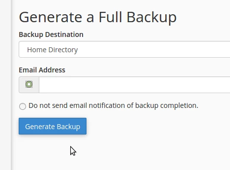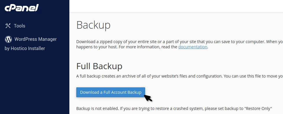 cPanel में पूर्ण बैकअप बनाना