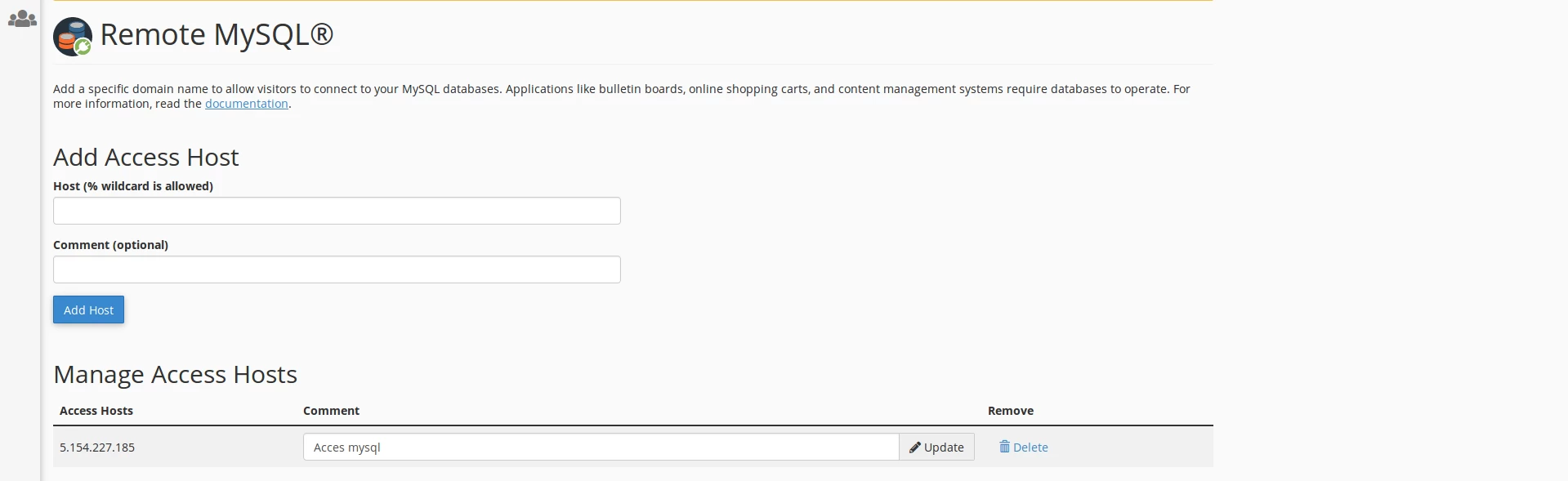 cPanel में दूरस्थ MySQL® पहुँच कॉन्फ़िगर करना