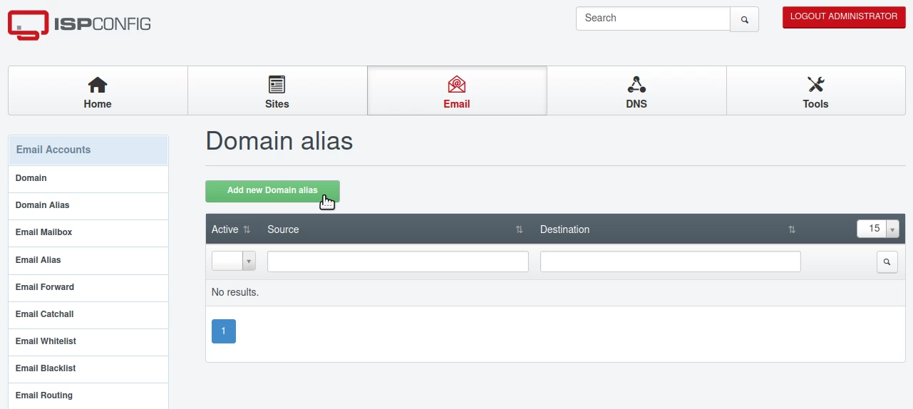 - ISPConfig पैनल की यह विशेषता एक डोमेन के लिए भेजे गए सभी ईमेल को दूसरे डोमेन पर पुनर्निर्देशित करने की अनुमति देती है।